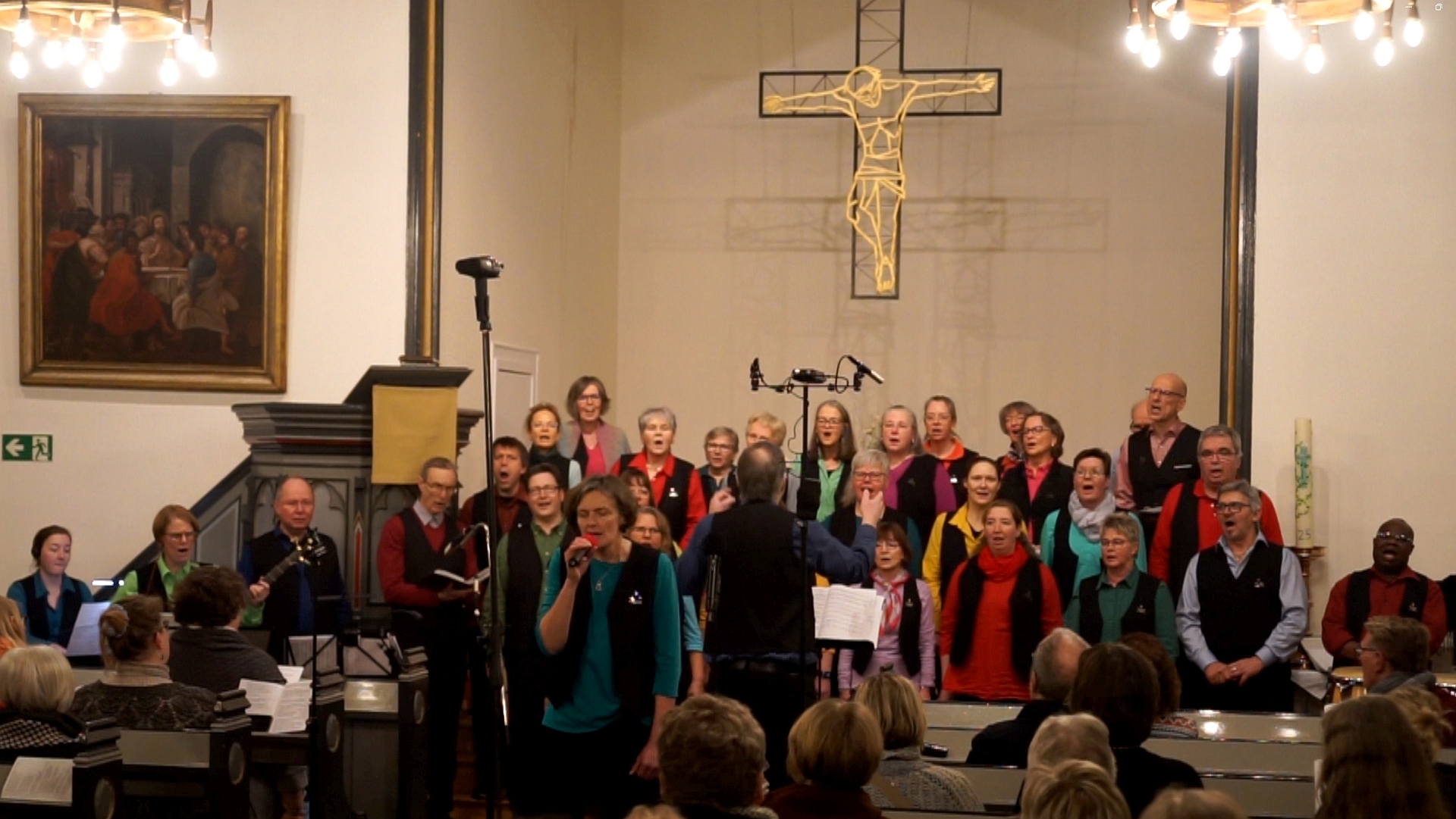 Jetzt erkläre ich, dass es bei From a distance darum geht, dass unser Planet bzw. das Leben hier aus der Entfernung anders aussieht als es tatsächlich ist. Da heißt es z.B. übersetzt: „Aus der Entfernung siehst Du aus wie mein Freund, obwohl wir eigentlich im Krieg sind.“ Ich erzähle, dass mir der Gedanke Mut macht, dass die allermeisten Menschen wohl in Frieden leben möchten. Und dass es mir hilft mehr im „Hier und Jetzt“ zu sein. Ich schließe mit den Worten: „Also, wir sind hier in dieser schönen Kirche und dürfen singen – ein guter Tag!“, woraufhin das Publikum lacht.
